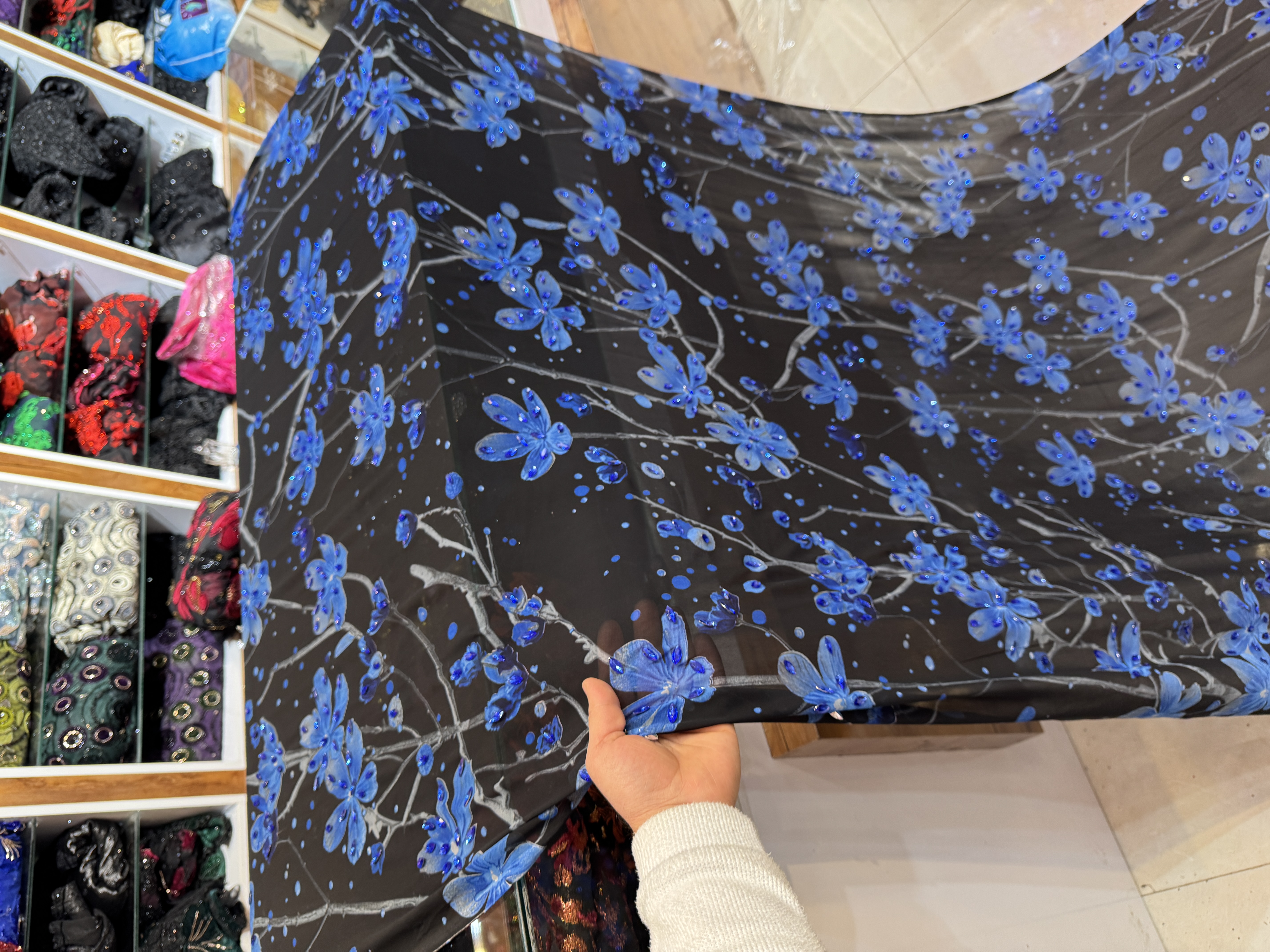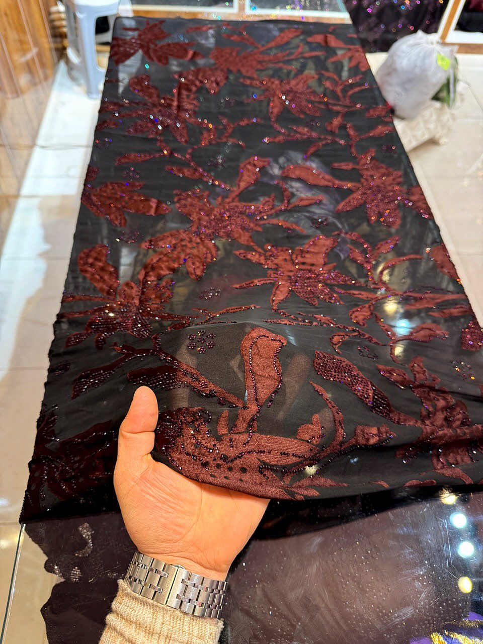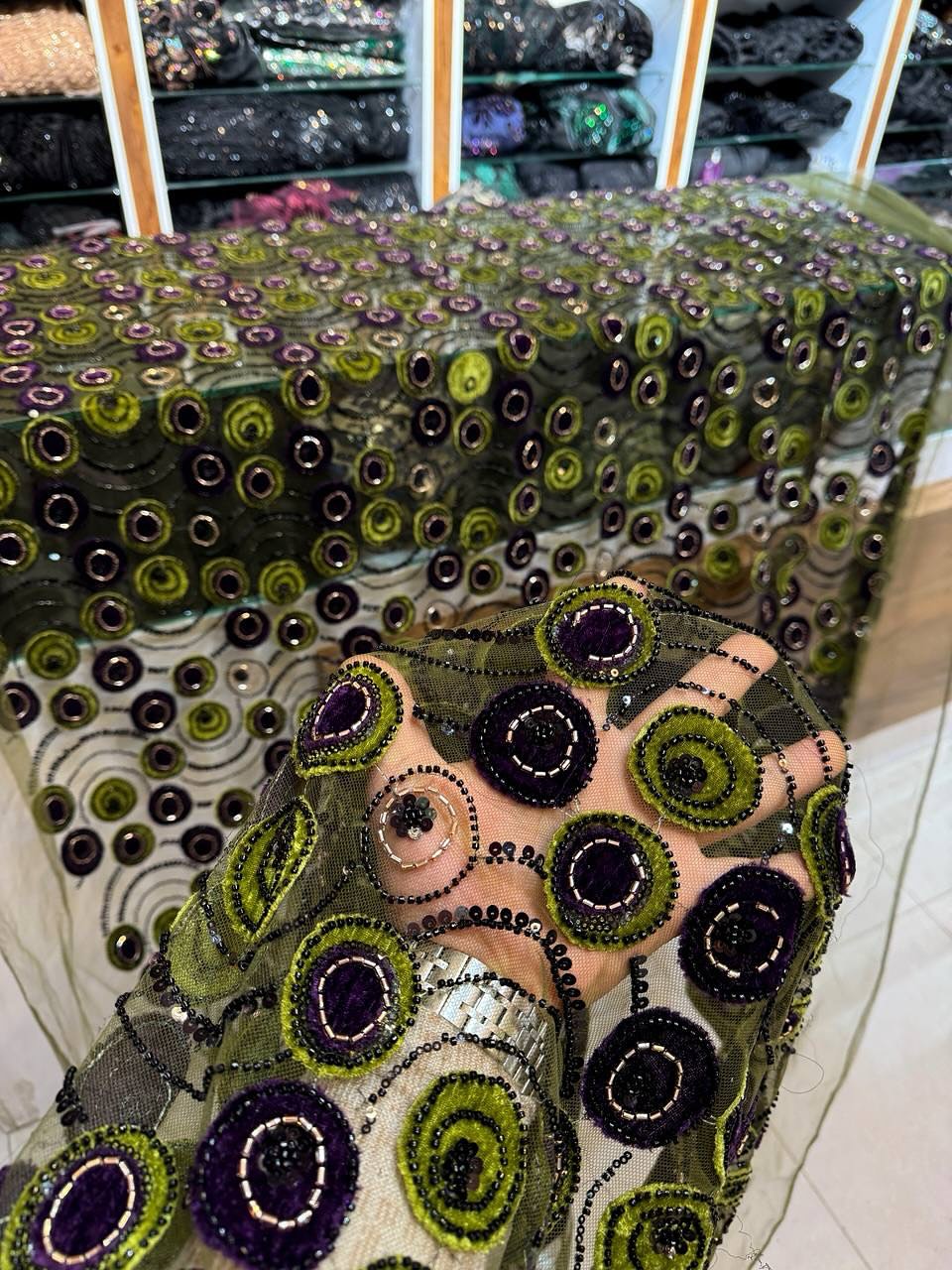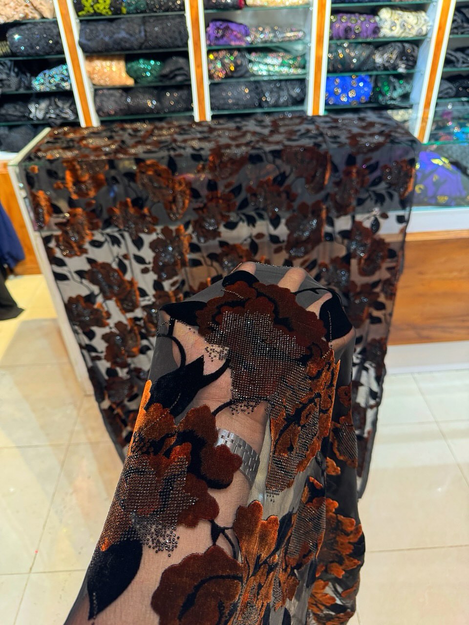 پارچه مخمل نگین جیکو قوارهای عرض ۱۵۰ – مناسب لباس مجلسی