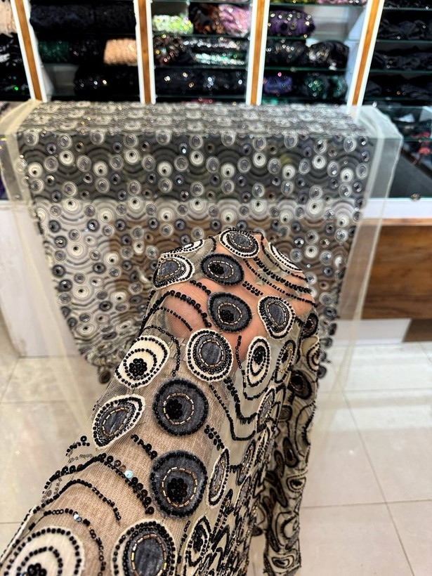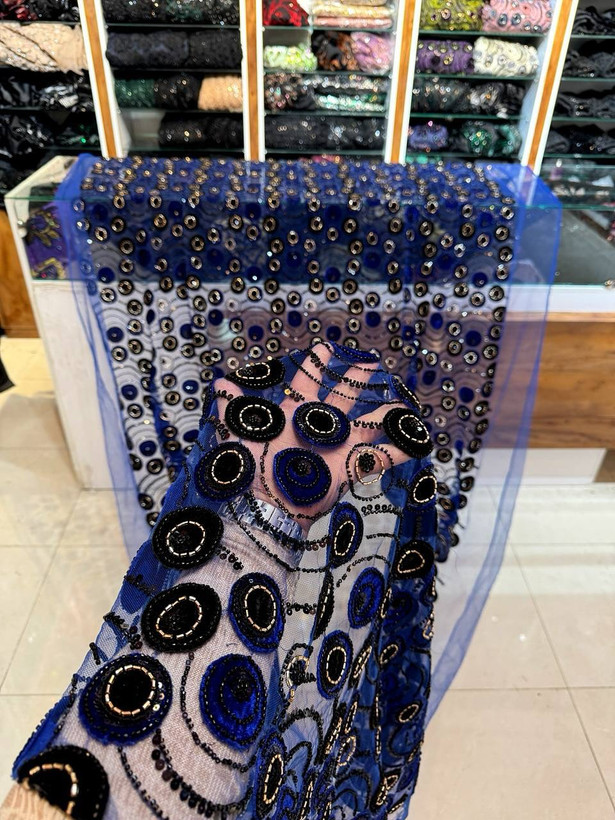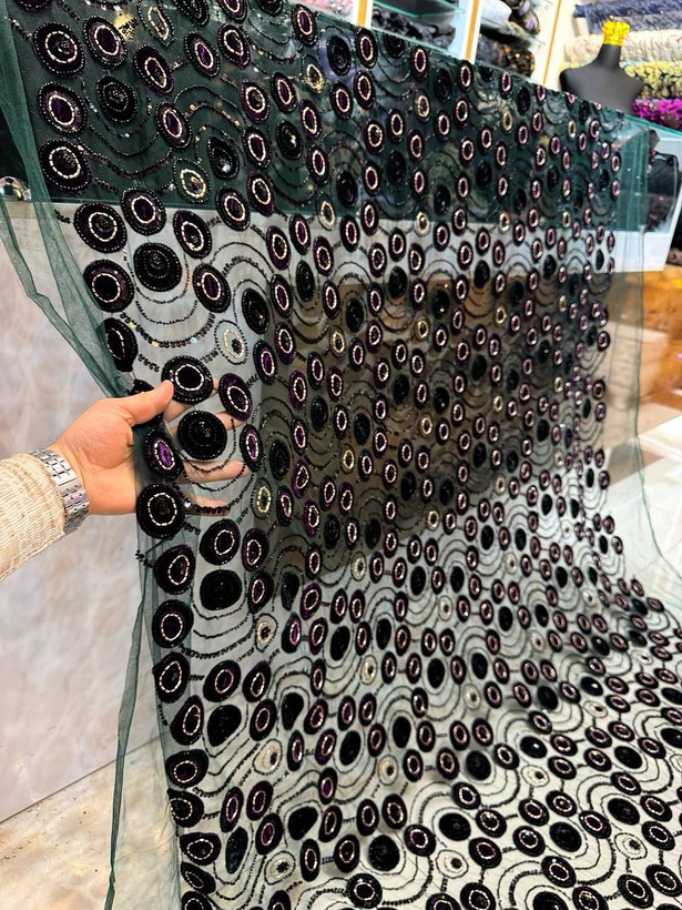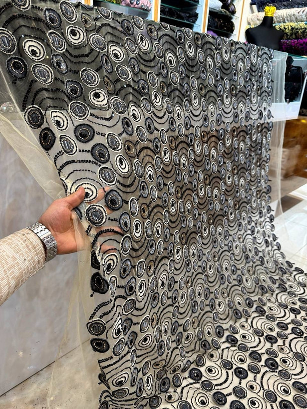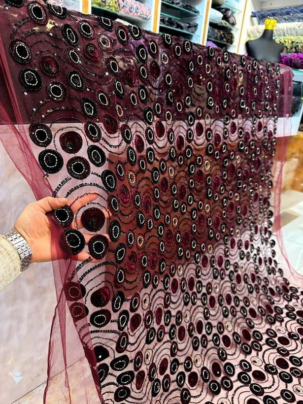 پارچه توری گل‌مخملی عرض ۱۵۰ – طرح برجسته و خاص