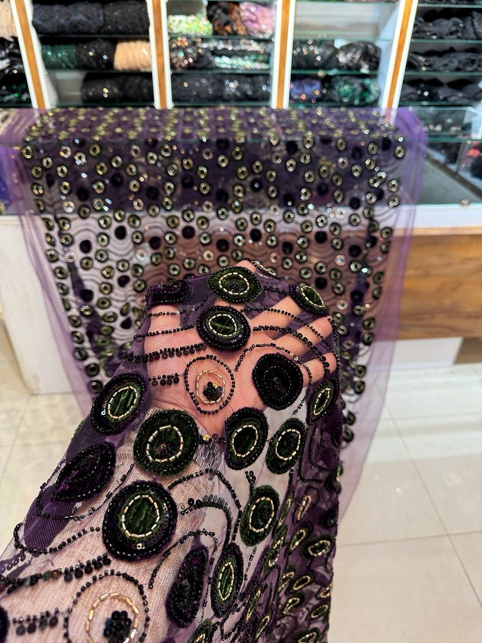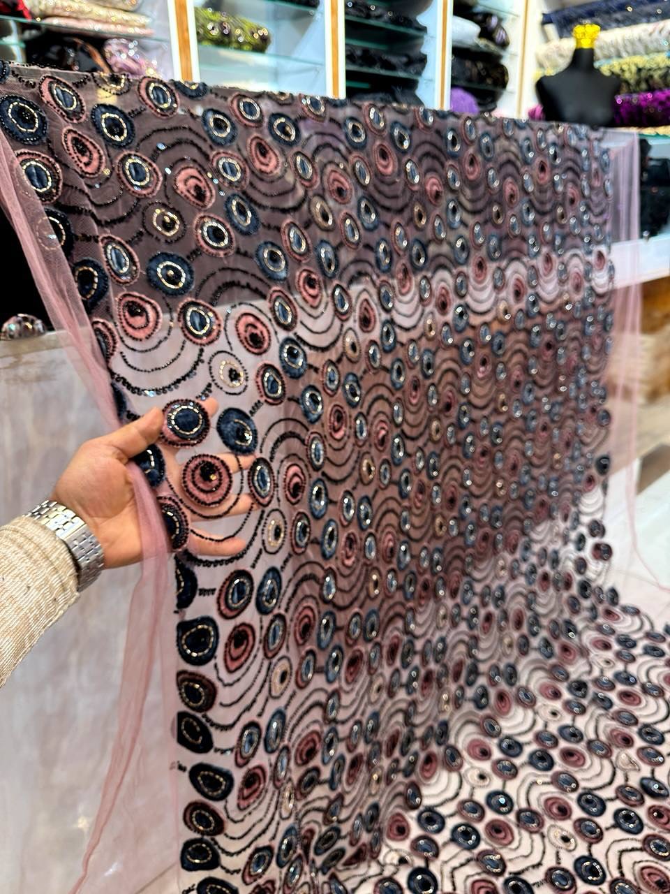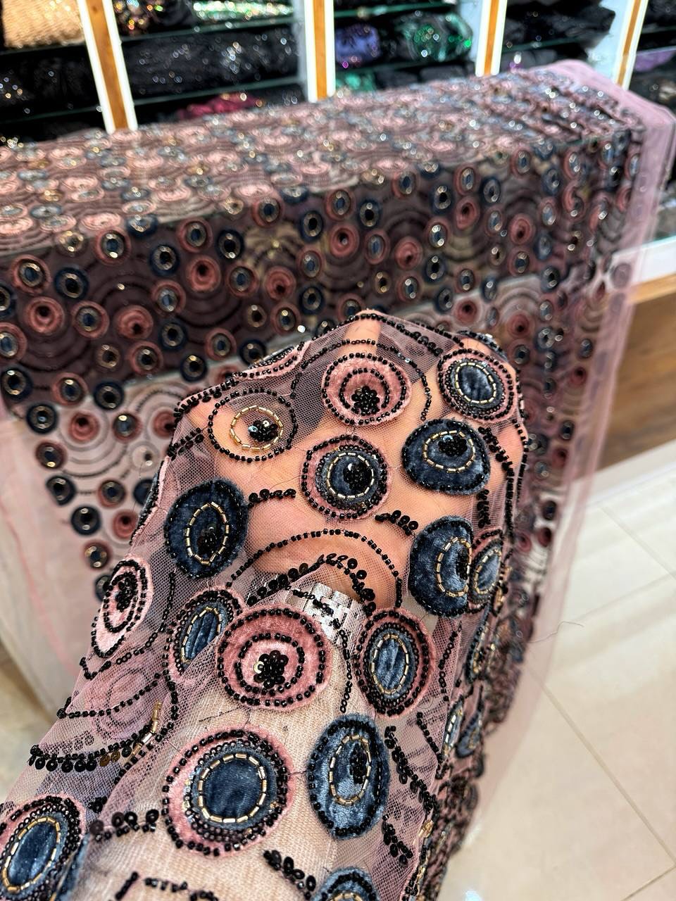 پارچه توری گل‌مخملی عرض ۱۵۰ – طرح برجسته و خاص
