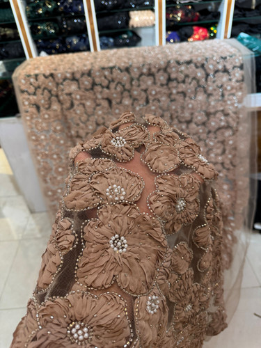 پارچه تور گل برجسته مروارید دوزی | عرض ۱۵۰
