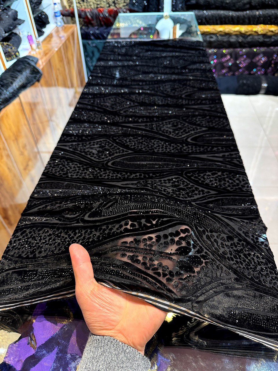 ناموجودپارچه مخمل نگین جیکو قوارهای عرض ۱۵۰ – مناسب لباس مجلسی